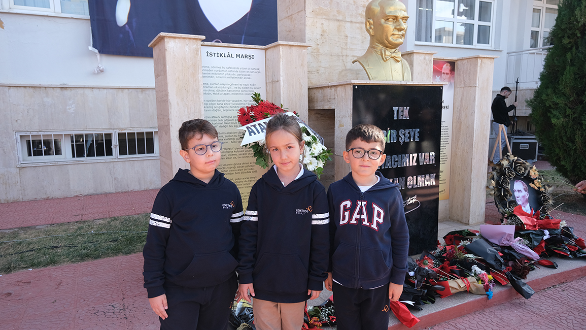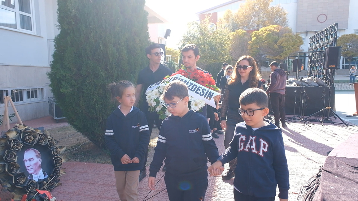 Okulumuzda gerçekleşen anma programımız; İstiklal Marşı ve Saygı Duruşu ile başladı. Açılış konuşmasını Ortaokul Müdürümüz Murat Şiraz yaptı. Ardından 5. sınıf öğrencilerimizin duygu dolu şiirleri, “Benim Adım Mustafa” adlı oratoryo gösterisi ve “Özlemle Anıyoruz” korosu ile anlamlı bir atmosfer oluşturuldu. Program, Atatürk’e olan bağlılığımızı simgeleyen çelenk töreni ile sona erdi.