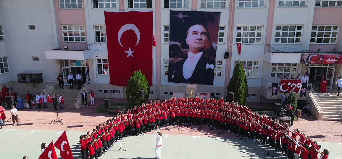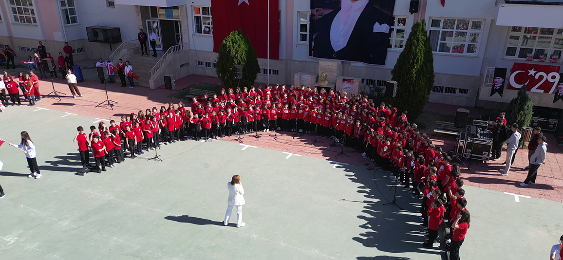 Okulumuzda 29 Ekim Cumhuriyet Bayramı büyük bir coşku ve gururla kutlandı. Program, Saygı Duruşu ve İstiklal Marşı ile başladı; ardından Cumhuriyet Bandosu tören alanında marşlar seslendirdi.