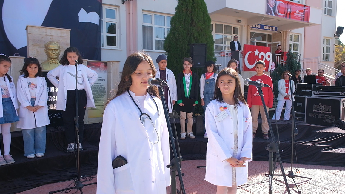 Açılış konuşmasını Anasınıfı Müdürümüz Gülümser Cengiz gerçekleştirdi. Programda 2. sınıf öğrencilerimiz şiirlerini seslendirdi, Drama Öğretmenimiz Soner Balcı rehberliğinde “Ben Cumhuriyet Çocuğuyum” oratoryosu sahnelendi.